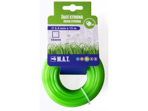 - kvalitná žacia struna do všetkých druhov vyžínačov - polyamid s prísadami na zaistenie pevnosti a pružnosti - profil štvorec 2.4 x 2.4 mm, dĺžka 15 m - EAN 8590804020400