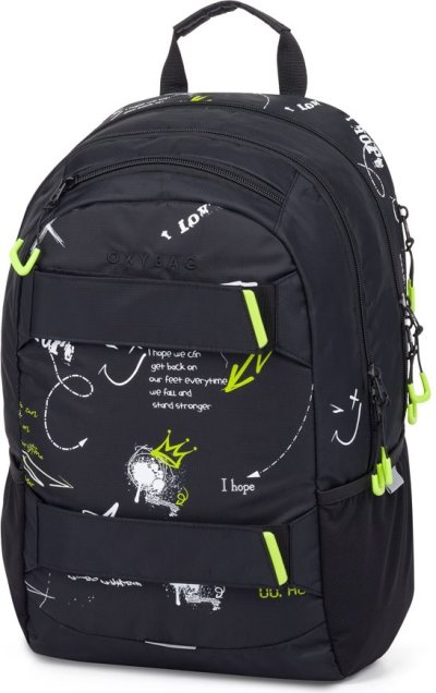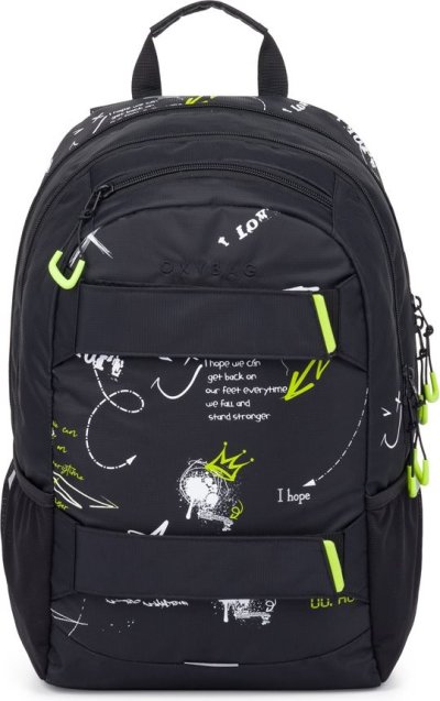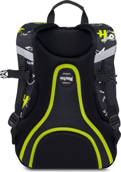 Výhodný set batohu a študentské etue. Batoh: Študentský aj voľnočasový školský plecniak radu OXY SPORT vyniká ergonomicky tvarovaným chrbtom, nastaviteľnými polstrovanými ramennými popruhmi a hrudným popruhom, vďaka ktorým sa pohodlne nosia. Batoh sa skladá z dvoch hlavných komôr a jedného menšieho predného vrecka s pevnými zipsami a praktickými pútkami. Vnútri batohu je vystužené vrecko na notebook, karabína na kľúče, menšie vrecko na drobnosti a skryté vrecko na chrbte. Nechýba ani bočné vrecko na fľašu na pitie a rad reflexných prvkov, vďaka ktorým je batoh lepšie viditeľný. Batoh je ideálny ako pre školákov na druhom stupni tak aj pre voľnočasové aktivity študentov a dospelých. Dĺžka chrbtového panelu je 46 cm, objem je 24 l, hmotnosť batohu je 870 ga jeho nosnosť je 8 kg. Etue: Študentské púzdro na písacie potreby s praktickou elastickou gumou, uzatváranie na zips.