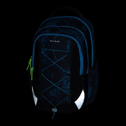 Batoh z radu OXY Touch je ideálnou voľbou pre školákov od 3. triedy, ktorí potrebujú dostatok priestoru na všetko dôležité do školy aj na voľnočasové aktivity. Trojkomorové usporiadanie batohu poskytuje dostatok miesta na učebnice, zošity, desiatu a ďalšie nevyhnutnosti. Hlavná priestranná komora obsahuje priehradku na notebook, zatiaľ čo predné vrecko je vybavené organizérom a karabínou na kľúče. Do bočného vrecka ľahko uložíte fľašu s pitím. Vďaka anatomicky tvarovanému a priedušnému chrbtu spolu s nastaviteľnými ramennými a hrudnými popruhmi sa batoh pohodlne nosí aj pri plnom zaťažení. Spevnené nepremokavé dno spoľahlivo chráni obsah pred vlhkosťou, reflexné prvky zase zaisťujú lepšiu viditeľnosť dieťaťa na ceste. Na prednej strane batohu sa nachádza praktická gumička, pod ktorou je možné upevniť napríklad tenkú mikinu. Dĺžka chrbtového panelu je 43 cm, objem činí 25 l, hmotnosť batohu je 900 ga jeho nosnosť je 8 kg.