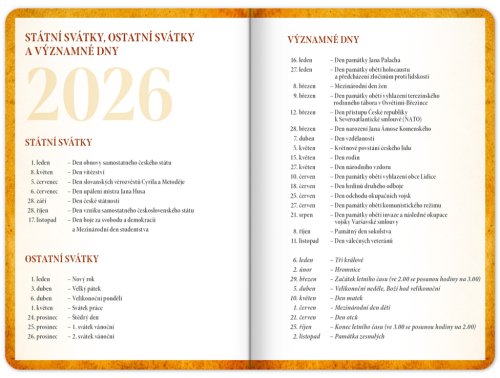 Študentský diár s obľúbeným motívom Harryho Pottera obsahuje prehľad na rok 2025 a 2026, české týždenné riadkové kalendárium s menami a sviatkami, rozvrh hodín, priestor na poznámky a základné poznatky z matematiky, fyziky, chémie a angličtiny pre študentov. Kalendárium začína v septembri 2025 a končí v decembri 2026.