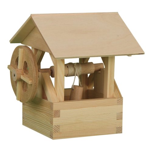 Prepracovaná drevená studňa s vedrom a strieškou je skvelým doplnkom k ostatným dreveným zlepovacím stavebniciam z našej série CREATIVE KIT. V stavebniciach CREATIVE KITS nájdete jednoduchý obrázkový návod so symbolmi jednotlivých úkonov, presne zhotovené hranoly z borovicového dreva o rozmere 9×9 mm v dĺžkach od 16 do 230 mm a preglejku hrúbky 3 mm. Jednotlivé diely sa zlepujú lepidlom na drevo a papier (Lepidlo nie je súčasťou balenia).