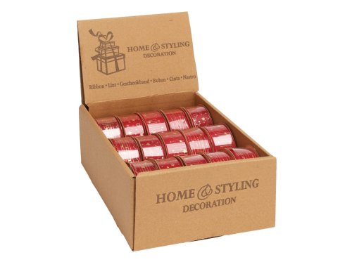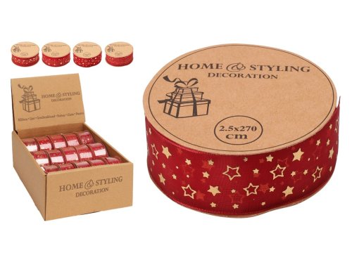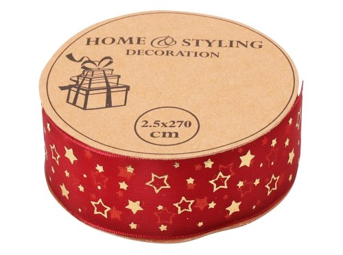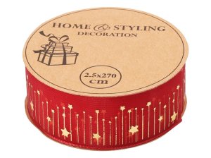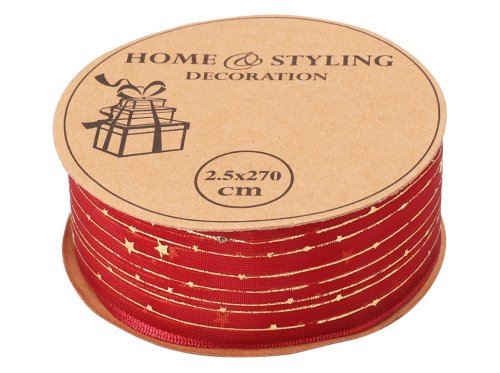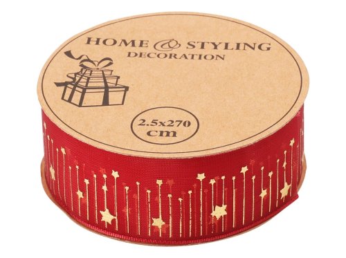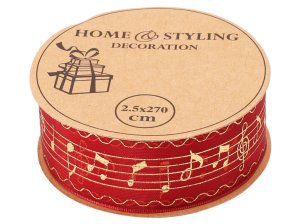 Stuha 2700x25mm potlač zlatý hviezda, husľový kľúč s notami box mix, červená, zlatá