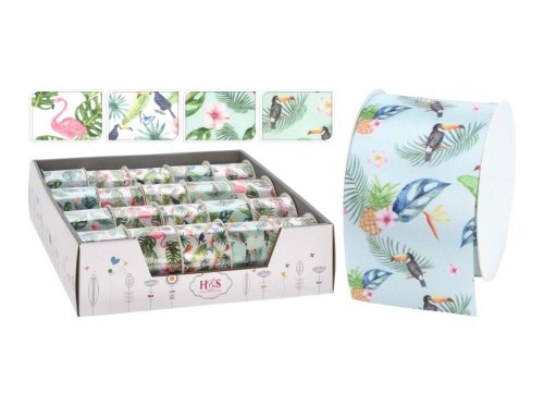 Dekoračná stuha s dĺžkou 2700 mm a šírkou 70 mm s motívom Tropical je ideálnym doplnkom pre balenie darčekov, aranžmánov alebo kreatívne projekty. Stuha je ponúkaná v boxe av mixe farieb, čo umožňuje ľahko vytvoriť pestré a výrazné dekorácie. Kvalitný materiál zaisťuje pevnosť a jednoduché tvarovanie, takže je vhodná pre mašle, dekorácie stolov, kvetinový aranžmán či iné kreatívne využitie. Skvelá voľba pre originálne, štýlové a farebné doplnky k vašim výzdobám. Tovar je dodávaný v mixe. Doručovaný tovar je vyberaný náhodne a nie je možné vybrať konkrétne prevedenie.