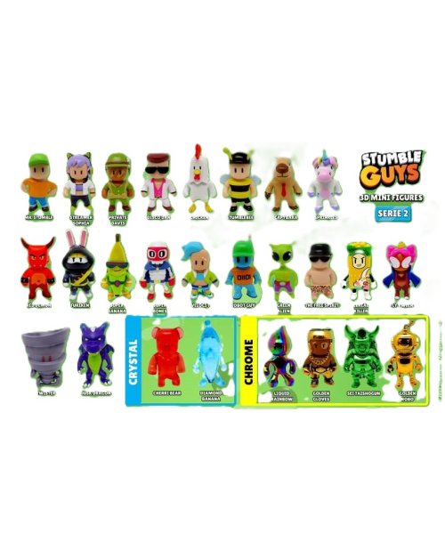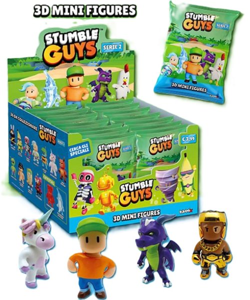 "NAZBIERAJTE ICH VŠETKY! Vstúpte do sveta Stumble Guys s našimi exkluzívnymi akčnými figúrkami! V sade sú vždy 3 figúrky. Figúrky sú 5 cm vysoké. Či už ste oddaný fanúšik alebo ešte len objavujete kúzlo Stumble Guys, tu máte šancu oživiť toto vzrušenie".