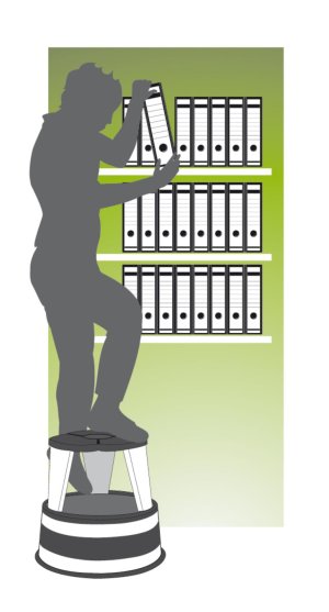 • Tri integrované kolieska umožňujú ľahké premiestnenie stupienku bez námahy, po zaťažení sa kolieska automaticky zafixujú, čo zaručuje úplnú stabilitu