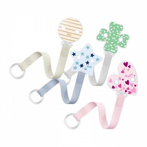 Veselá, farebná stužka na cumlík NUK s flexibilným krúžkom. Vďaka spone cumlík nespadne na zem a nezašpiní sa a nestratí sa. Má jednoduché použitie a je vyrobená tak, aby sa dala pripnúť k detskému oblečeniu. Určené pre deti od prvých dní života. Stužka je vhodná aj na cumlíky bez krúžku vďaka naťahovaciemu silikónovému krúžku. Systém klipu je bez ostrých hrán na otváranie a zatváranie jednou rukou.