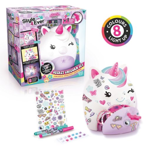 Prineste do svojej izby mágiu s lampičkou Jednorožca s tajnou priehradkou! Táto kreatívna súprava je ideálna pre všetkých malých umelcov, ktorí sa radi zapájajú do tvorenia a zároveň milujú kúzelné dekorácie. Lampička Jednorožec, ktorú si môžete ozdobiť podľa vlastných predstáv, prináša nielen zábavu, ale aj krásne svetlo, ktoré vytvorí útulnú atmosféru. Balenie obsahuje: svietiacu figúrku jednorožca v krásnom dizajne s tajnou priehradkou. Svieti 8 farbami. Ďalej 2 fixy – na maľovanie a dozdobenie jednorožca v rôznych farbách. Nálepky a kamienky - pre ešte väčšie kreatívne možnosti pri dekorovaní. Návod na použitie – jednoduchý postup pre kreatívnu zábavu.<br> ; Vyžaduje 2× AAA batérie (nie sú súčasťou balenia).<br> Vhodné pre deti od 6 rokov.