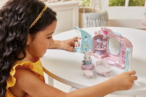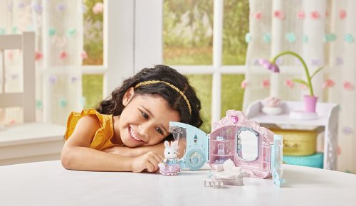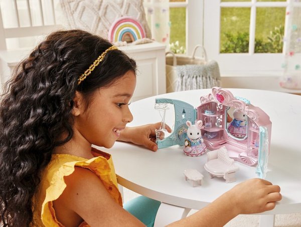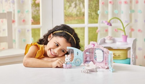 Hracia sada Sylvanian Families Štýlový šatník obsahuje krásny trblietavý kočiar, doplnky a figúrku dievčatka z rodiny Snežných králikov oblečenú do princeznovských šiat. Stačí otvoriť dvojité dvere a kočiar sa premení na krásnu štýlovú komnatu s množstvom skvelých doplnkov a políc, na ktoré ich môžete vyskladať. Sada obsahuje doplnky na vytváranie tých najmódnejších outfitov. Kočiar má rukoväť, takže ho možno použiť na prenášanie figúrok a doplnkov. Figúrky a doplnky zo sady je možné kombinovať s ďalšími sadami, domčeky a doplnky Sylvanian Families. Hračky Sylvanian Families vyrába japonská spoločnosť Epoch už viac ako 35 rokov. Vyznačujú sa výnimočnou kvalitou a zmyslom pre detail. Figúrky majú pohyblivé hlavičky, ručičky a nožičky. Odporúčame od 3 rokov veku.