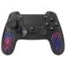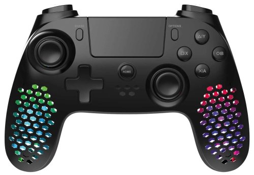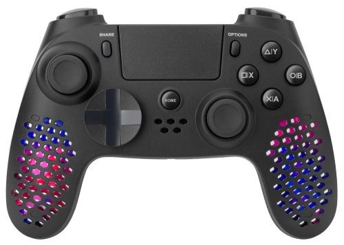 Ľahký bezdrôtový gamepad založený na technológii Bluetooth podporuje pripojenie k počítaču alebo hernú konzolu PS4 a PS3. Vďaka vibráciám ponúka realistický zážitok z hry. Disponuje prispôsobiteľným joystickom, smerovým D-padom s rôznymi tvarmi a 17 tlačidlami , s ktorými budete mať všetky herné funkcie vždy na dosah ruky. Jedinečný perforovaný dizajn ovládača skvele dopĺňa nastaviteľné RGB podsvietenie . K dispozícii je navyše aj 3,5 mm jack konektor pre pripojenie slúchadiel. Napájanie zaisťuje integrovaná batéria , jej dobíjanie potom priložený nabíjací kábel.