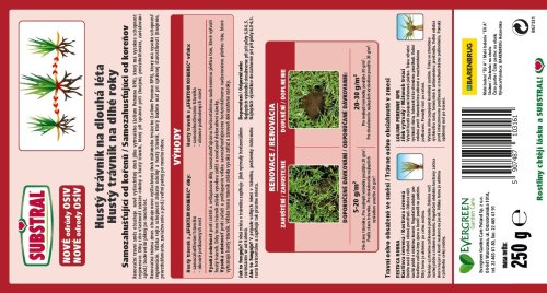Parametre regeneračnej samozahusťovacej trávnej zmesi Substral 250 g: