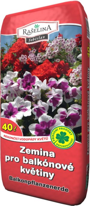 Zemina pre balkónové kvety je pripravená na presádzanie a pestovanie muškátov - pelargónií, petúnií, begónií, fuchsií, aksamitníkov, verben ai ďalších balkónových kvetín s podobnými požiadavkami. Zemina je vyrobená z kvalitnej triedenej rašeliny s prídavkom minerálnych hnojív a vápenatej zložky. Rašelina môže byť čiastočne nahradená kompostovanou stromovou kôrou.