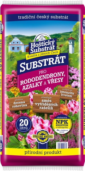 Hoštický substrát je určený pre rododendrony, azalky a vresy. Je vyrobený zo zmesi vytriedenej svetlej a tmavej rašeliny s vhodnou kyslosťou. K základnému vyhnojeniu substrátu je použité minerálne viaczložkové hnojivo s mikroprvkami. Substrát je ďalej obohatený o fosforečné hnojivo a železo v chelátovej forme. Svojou štruktúrou a optimálnym pomerom jednotlivých typov rašelín je zaistená rovnováha medzi vodnou a vzdušnou kapacitou substrátu. Zvýšený obsah fosforu podporuje intenzitu kvitnutia a bohatosť a veľkosť kvetu. Prídavok drvenej rohoviny zaisťuje dlhodobé a pozvoľné uvoľňovanie dusíka aj ďalších živín, ktoré sú prítomné v stopovom množstve. Balenie: 20 l.