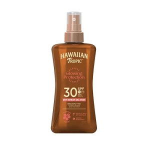 Olej na opaľovanie v spreji SPF 30 Hawaiian Tropic Protective ochráni vašu pokožku pred slnečným žiarením, krásne ju prevonia a zanechá ju hebkú. Tento suchý olej sa krásne vstrebáva do pokožky, nelepí a veľmi ľahko sa rozotiera. A vďaka vodeodolnému zloženiu sa skvele hodí aj na pláž či k bazénu.