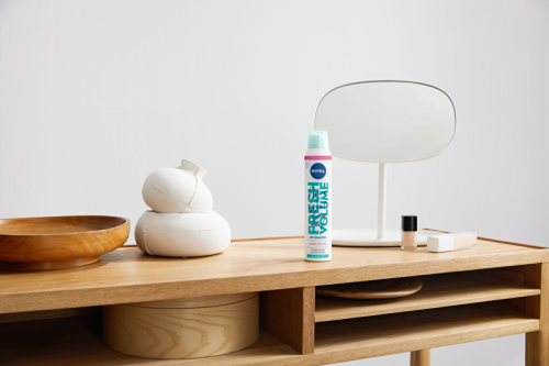 Budík nezazvonil? Svieže vlasy s objemom môžete mať už za 10 sekúnd. Vyskúšajte NIVEA suchý šampón Fresh Volume. Máte dohodnutú schôdzku, ale vaše vlasy protestujú? Dodajte im svieži vzhľad a objem, než poviete švec. Inovatívne vegánske zloženie suchého šampónu Fresh Volume vás zachráni. Stačí ho pretrepať, nastriekať, vmasírovať a môžete vyraziť. Ryžové výťažky absorbujú prebytočnú mastnotu a vaše vlasy budú vyzerať ako čerstvo umyté. Šampón je vhodný pre všetky typy vlasov. A čo je najlepšie? Že ste ho použili nikto nespozná, pretože biele stopy po spreji vám so suchým šampónom Fresh Volume nehrozia. Osviežte svoje vlasy a dodajte im 24-hodinový objem.