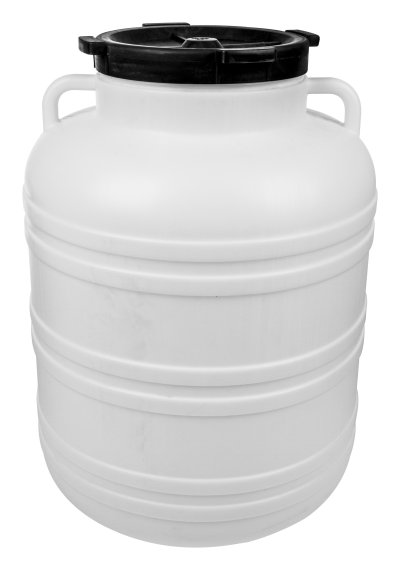 Sud na kapustu. Plastový sud na kapustu so skrutkovacím vekom. Na naloženie kapusty sa používajú vrecká.