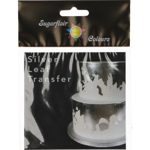 Transfer fólia od Sugarflair má podobu strieborného plátu. Rozmery 9,5 x 9,5 cm.