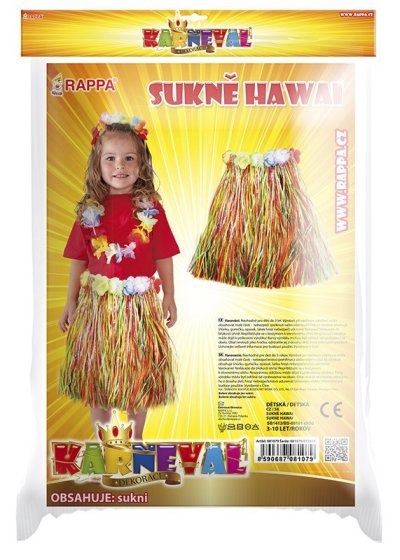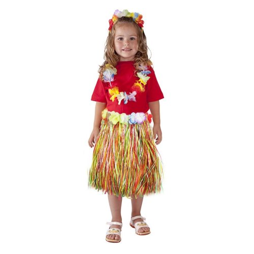 Parádna sukňa v štýle "Havaj" nesmie žiadne slečne v šatníku chýbať! Sukienka je určená pre dievčatká vo vekovom rozmedzí 3-10 rokov (104-150 cm). Tento senzačný kúsok je ideálnym doplnkom na karneval alebo k typickému havajskému tancu "HULA". Sukňa dlhá 45 cm je vyrobená z tenkých igelitových pásikov v rôznych farbách a zdobená farebnými okvetnými lístkami. Paráda! Staň sa hviezdou karnevalového večierka vďaka tejto havajskej sukni alebo si vytvor celý havajský kostým! Balenie obsahuje iba sukňu.