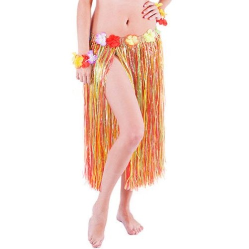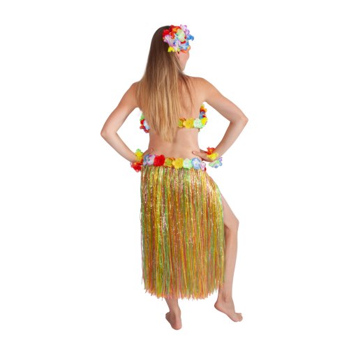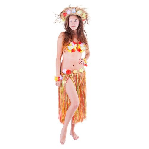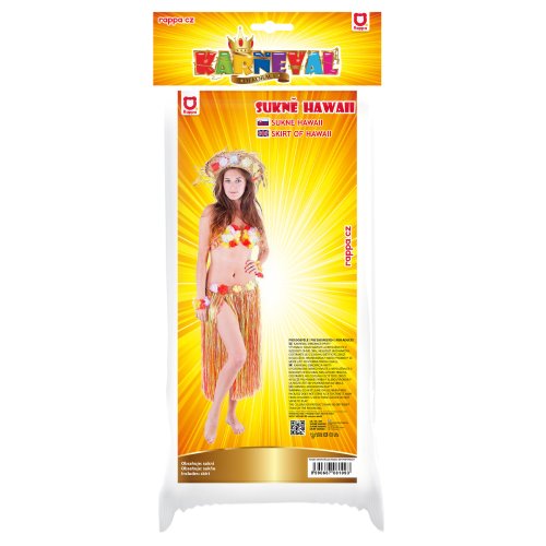 Parádna sukňa v štýle "Havaj" nesmie žiadnej dáme v šatníku chýbať! Tento senzačný kúsok je ideálnym doplnkom na karneval alebo k typickému havajskému tancu "HULA". Sukňa, dlhá 72 cm, je vyrobená z tenkých igelitových pásikov v rôznych farbách a zdobená farebnými okvetnými lístkami. Paráda! Staň sa hviezdou karnevalového večierka vďaka tejto havajskej sukni alebo si vytvor celý havajský kostým! Balenie obsahuje iba sukňu.