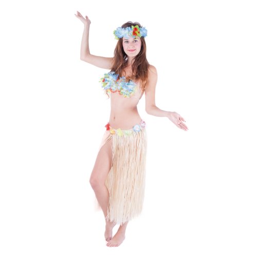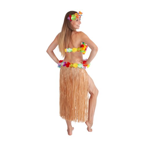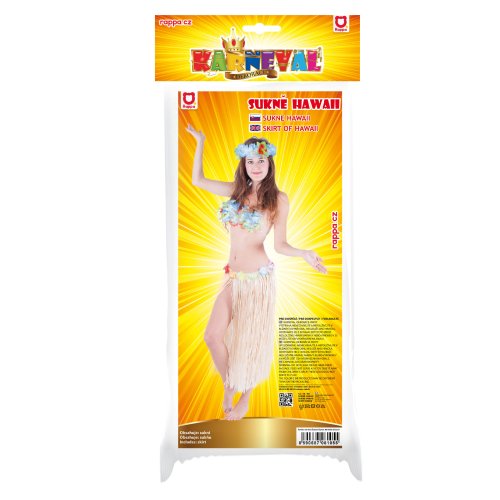 Parádna sukňa v štýle "Havaj" nesmie žiadnej dáme v šatníku chýbať! Tento senzačný kúsok je ideálnym doplnkom na karneval alebo k typickému havajskému tancu "HULA". Sukňa, dlhá 72 cm, je vyrobená z tenkých igelitových pásikov v prírodnej farbe a zdobená farebnými okvetnými lístkami. Paráda! Staň sa hviezdou karnevalového večierka vďaka tejto havajskej sukni alebo si vytvor celý havajský kostým! Balenie obsahuje iba sukňu.