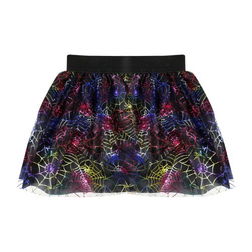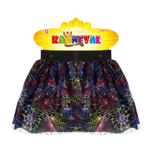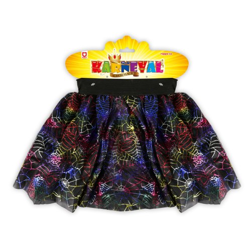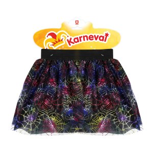 Sukne tutu pre všetky malé parádnice čarodejnice! Sukienka má čiernu spodničku, prekrytú tylom potlačeným farebnými pavučinkami. Je určená pre dievčatká vo vekovom rozmedzí 3-7 rokov. Dĺžka sukne je 28 cm. Skvele sa hodí aj na oslavu Halloweenu alebo karneval!