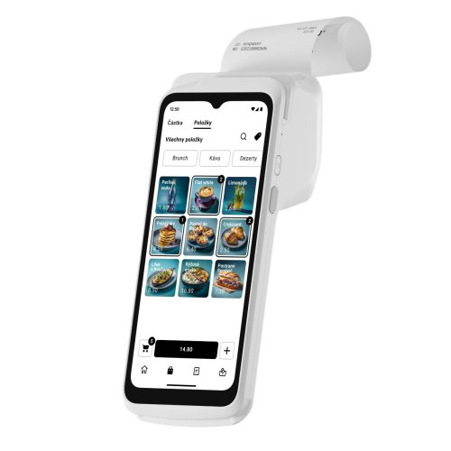 Rýchla a užívateľsky prívetivá obrazovka - rovnako ako váš chytrý telefón. Na veľkom HD displeji môžete ľahko prechádzať položky, ceny a zľavy. S odolným sklom Corning Gorilla Glass. Tlačte potvrdenie o platbe priamo zo zariadenia. Zabudovaná tlačiareň používa štandardnú 58mm rolku termopapiera, ktoré ľahko a rýchlo vymeníte. S dobíjacou batériou, ktorá vydrží celú prevádzkovú dobu, môžete predávať kdekoľvek - či už ste v reštaurácii, v predajni alebo v teréne.