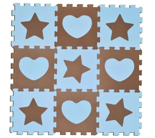 Penové podlahové puzzle s vrúbkovaným povrchom a vyberateľnými časťami, pre deti už od 10 mesiacov vďaka veľkým dielikom, ktoré dieťa nemôže vdýchnuť alebo prehltnúť. Je ideálny na vytvorenie hracej plochy nielen do detských izbičiek, ale všade tam, kde sa hrajú deti a plávajúca podlaha, dlažba alebo linoleum sú príliš chladné. Penové podlahové puzzle je mäkké, umývateľné, zdravotne nezávadné, tlmí hluk a skvele izoluje. Hrúbka 1cm. Pre deti od 10 mesiacov. Hračka vyhovuje európskej smernici 2005,84,EC a norme EN71 časť 1, 2 a 3. Výrobok dodávame podľa skladových zásob vo variante päť modrých a štyri hnedé alebo päť hnedých a štyri modré diely.