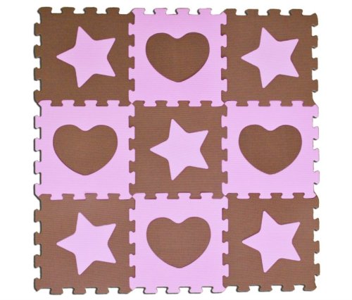 Penové podlahové puzzle s vrúbkovaným povrchom a vyberateľnými časťami, pre deti už od 10 mesiacov vďaka veľkým dielikom, ktoré dieťa nemôže vdýchnuť alebo prehltnúť. Je ideálny na vytvorenie hracej plochy nielen do detských izbičiek, ale všade tam, kde sa hrajú deti a plávajúca podlaha, dlažba alebo linoleum sú príliš chladné. Penové podlahové puzzle je mäkké, umývateľné, zdravotne nezávadné, tlmí hluk a skvele izoluje. Hrúbka 1cm. Pre deti od 10 mesiacov. Hračka vyhovuje európskej smernici 2005,84,EC a norme EN71 časť 1, 2 a 3. Výrobok dodávame podľa skladových zásob vo variante päť ružových a štyri hnedé alebo päť hnedých a štyri ružové diely.