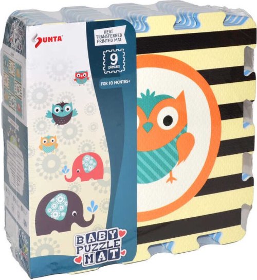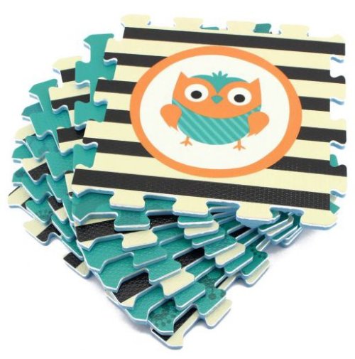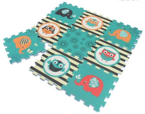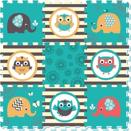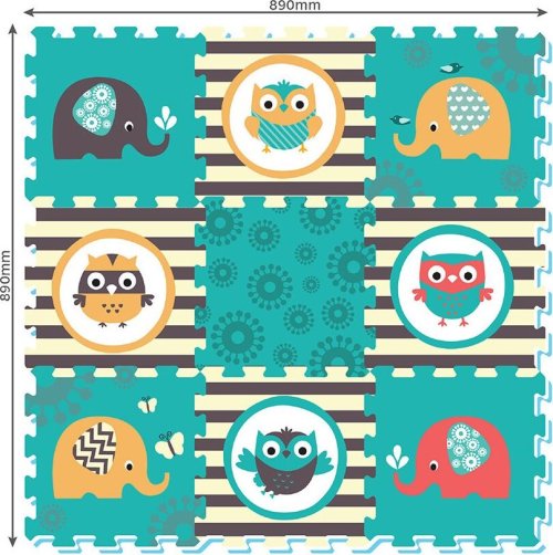Penové podlahové puzzle s potlačou roztomilých sovičiek a slonov. Penový koberec je vhodný pre deti už od 10 mesiacov. Je ideálny na vytvorenie hracej plochy nielen do detských izbičiek, ale všade tam, kde sa hrajú deti a plávajúca podlaha, dlažba alebo linoleum sú príliš chladné. Penové podlahové puzzle je mäkké, umývateľné, zdravotne nezávadné, tlmí hluk a skvele izoluje. Hrúbka dielikov je 1 cm.