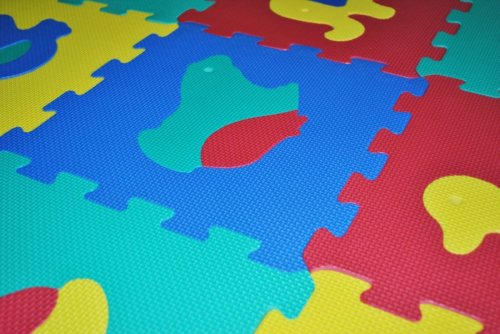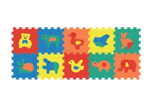 Mäkké bloky Puzzle môžete rozložiť a bezpečne sa hrať s deťmi na podlahe. Bloky sú mäkké a odolné, môžete ich použiť aj ako hraciu podložku. Eva foam, z ktorej sú vyrobené je nezávadná a plne umývateľná. 10 ks v balení. Rozmery jedného kusu 32x32 cm Odporúčaný vek: od 10 mesiacov