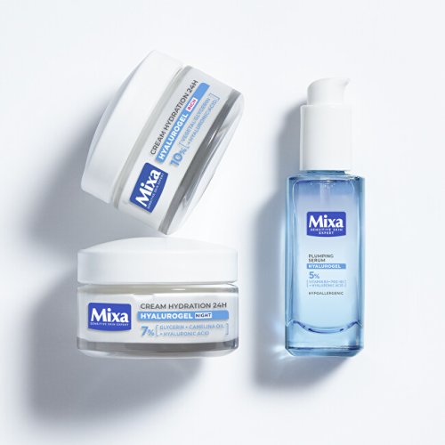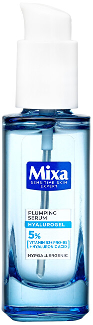 Objavte sérum HYALUROGEL na citlivú pleť od Mixy. S vysokým obsahom expertných ingrediencií: 5% vitamínu B3 + provitamín B5 + čistá kyselina hyalurónová. Sérum pomáha upokojiť citlivú pleť od 1. použitia, znižuje nepríjemné pocity a stiahnutie pleti. Poskytuje intenzívnu hydratáciu po dobu 24h pre viditeľne vyplnenú vlhkosťou.