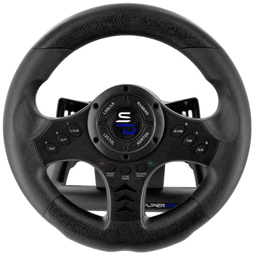 Základňa je vybavená prísavkami , vďaka ktorým volant pevne drží na svojom mieste. Herná periféria SUPERDRIVE SV450 je kompatibilná s celým radom herných konzol, PC a závodných titulov. Svoje vodičské schopnosti tak otestujete v takých herných peckách ako Gran Turismo Sport, Forza Moto Sport 7, F1 2020, Need for Speed, Dirt, GTA V a ďalšie.