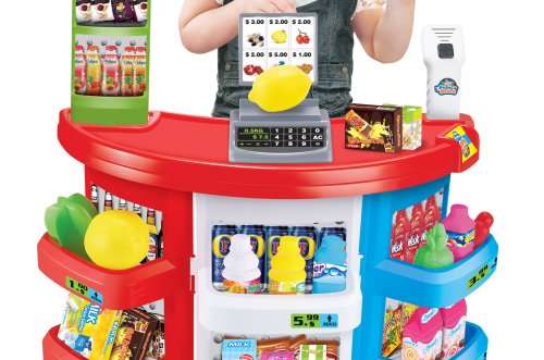 A ide sa nakupovať do supermarketu! Celá rodina čaká, aby si u teba nakúpili a prehodili niekoľko slov. Aby nie, kde inde by našli za pultom niekoho tak milého a šikovného? Nezabudni zase doplniť tovar! Čítačka kódov vydáva zvukové a svetelné efekty.