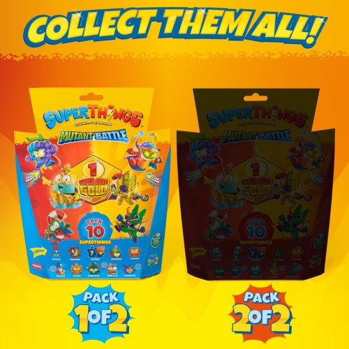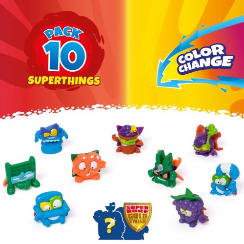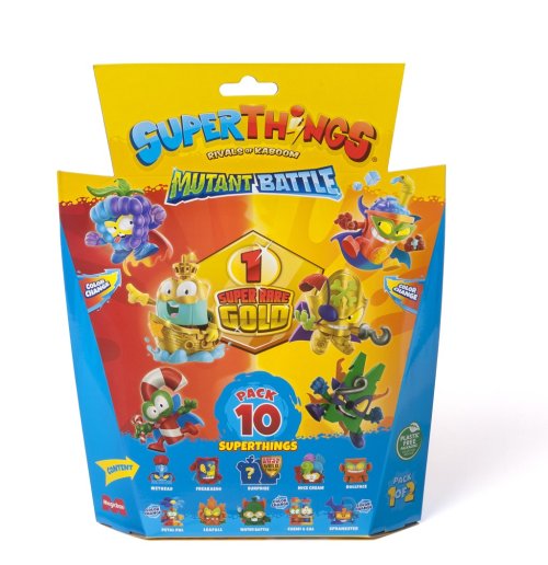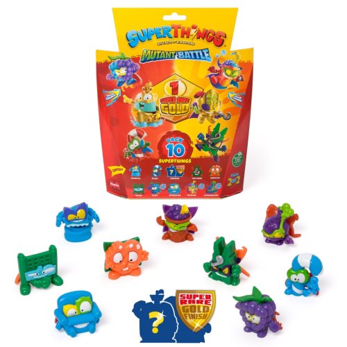 Chceš rýchlo začať alebo rozšíriť svoju zbierku SuperThings Mutant Battle?S týmto balením získaš 10 SuperThings – jeden z nich je zlatý (hrdina alebo zloduch) a tri majú funkciu zmeny farby. Žijú v meste Kaboom City a každý SuperThing má svojho rivala - nájdi súperiace dvojice a skompletuj tímy. Akcia je zaručená! Obsahuje: • 10 SuperThings (1 zlatý, 3 s funkciou zmeny farby)