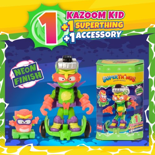 SuperThings NeonPower v krabičke - Mocný Kazoomblast naďalej produkuje energiu, ktorá stojí za magickými udalosťami, aké mestečko nikdy nevidelo. V Kaboom City sa tak objavilo 6 nových Kazoom Kids, teraz s neónovým efektom! Toolie Kit, Breakmania, Starlock, Cashillion, Watermax a Funfire sa pripojili k SuperThings v bitke o nadvládu nad mestom. Kto z nich zvíťazí? Iba vy môžete tento boj rozhodnúť! Obsahuje: • 1 figúrka Kazoom Kid • 1 figúrka SuperThing