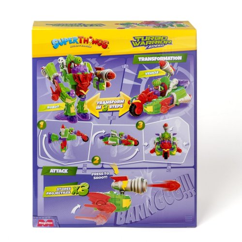 Turbo Warriors dorazili do Kaboom City!Zoznámte sa s Turbo Power a jeho rivalom Turbo Speed: roboty ďalšej generácie, ktorí sa dokážu premeniť na vozidlá! aj Kids, takže zábava nikdy nekončí! Obsah balenia: • 1 Turbo Warrior • 1 exkluzívny doplnok • 1 exkluzívny SuperThing