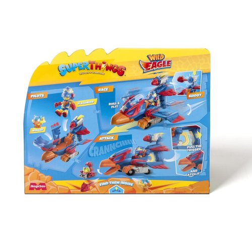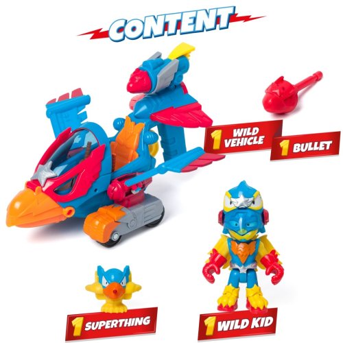 Bojujte na zemi aj vo vzduchu s Wild Eagle Jetom a vozidlom Wild Scorpion! S ich silnými zvieracími útokmi a skúsenými pilotmi vás čaká ten najdivokejší súboj! Uvoľnite plnú silu orla s exkluzívnym Kidom a SuperThingom, ktorí môžu lietať v kokpite. Ísť pri pohybe pohybuje krídlami hore a dole. Stlačte spúšť a zostreľte zbabelcami alebo ich chyťte v zobáku. Obsah balenia:• 1 vozidlo• 1 exkluzívny Wild Kid• 1 exkluzívny Wild SuperThing• 1 strela