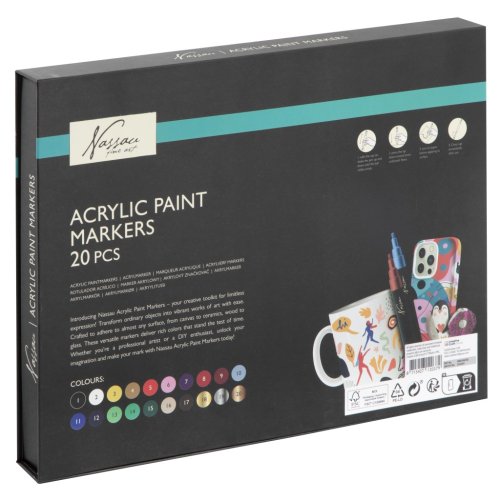 Súprava akrylových fixiek – premieňa obyčajné predmety na neobyčajné. Sú vytvorené tak, aby držalo skoro na každom povrchu – na plátne, keramike, dreve, skle aj plaste. Tieto univerzálne akrylové fixy dodávajú bohatú farebnosť na dlhú dobu (stálofarebné). Súprava obsahuje 20 akrylových fixiek.