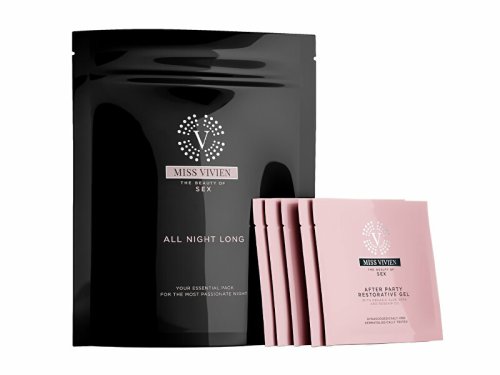 Súprava obsahuje jeden latexový kondóm a 5 jednorazového balenia najobľúbenejších produktov Miss Vivien - masážneho gélu s diamantovým práškom, intímneho lubrikantu, regeneračného gélu po styku, pleasure gélu s hrejivým aj chladivým efektom.