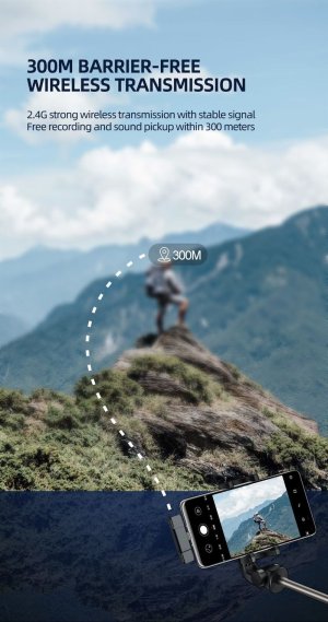 Technické špecifikácie: Kapacita batérie: 70mAh Doba nabíjania: 70 min. Frekvencia: 2,4GHz Frekvenčný rozsah: 20Hz-20kHz Mikrofón: duálny, digitálny Citlivosť mikrofónu: -26dB Vstup: DC 4,8-5,4V Vzdialenosť prenosu: min. 300m otvorený priestor, až 20m uzavretý priestor Pracovný čas: 6h SNR (Signal to Noise Ratio): 64dB Nabíjací vstup: USB-C Oneskorenie: 15ms