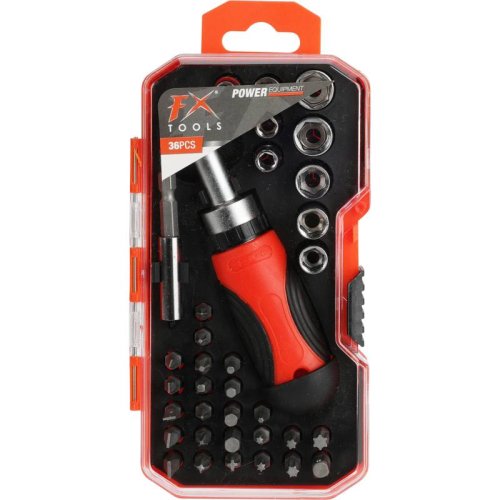 Súprava bitov s račňou – 36 ks, TPR rukoväť, uhlíková oceľ
