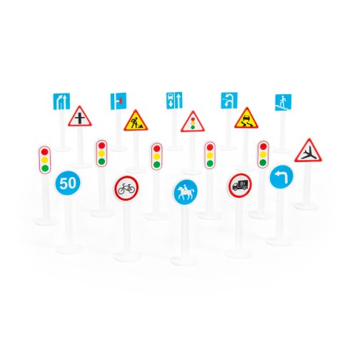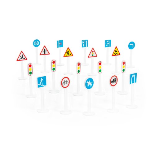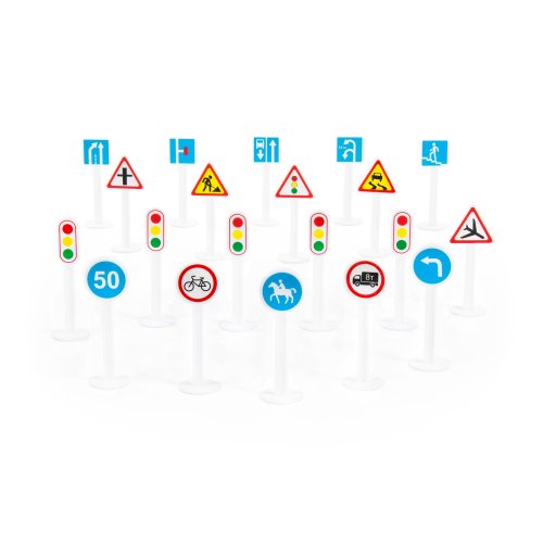 Priprav značky, naštartuj auto a vydaj sa na cesty! Nauč sa zábavnou formou hry spoznávať dopravné značky! S touto plastovou sadou to pôjde raz dva!