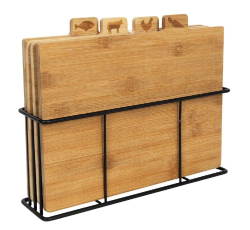 Súčasťou sady je aj elegantný kovový stojan, ktorý udrží dosky vždy po ruke a zaisťuje ich prehľadné usporiadanie . Dosky sú vyrobené z odolného a ekologického bambusu , ktorý je šetrný k vašim nožom a ľahko sa čistí.