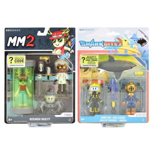 Táto herná sada DEVSeries prináša napínavú scénu z edície Shark Bite2. Súčasťou sú dve figúrky vo veľkosti cca7cm), ktoré reprezentujú potápačov (Diver a DeepSeaDiver), ďalej stavebné doplnky – klietka pre žraloka a žraloka Veľkej bielej (“GreatWhiteShark”) – a navyše exkluzívny kód na odomknutie virtuálneho predmetu v online prostredí. Obsah balenia: 2 akčné figúrky (Diver, DeepSea Diver), 1 doplnok „žraločia klietka“ (ready-to-build), 1 figúrka žraloka Veľké biele, Exkluzívny herný kód pre virtuálny obsah.
