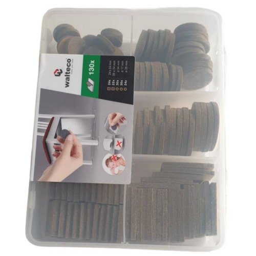 Súprava obsahuje: Filcové podložky: 24x24 mm - 24x, 35x24 mm - 22x, O 34 mm - 30x, O 25 mm - 24x, O 17 mm - 30x