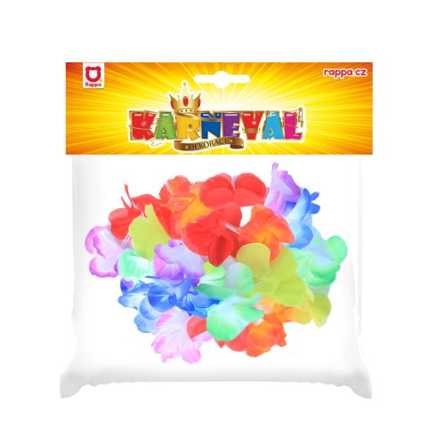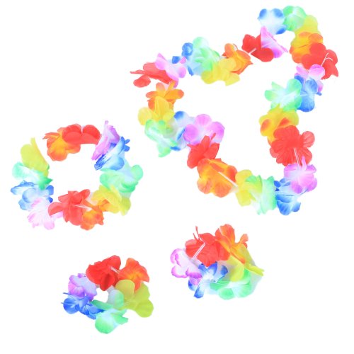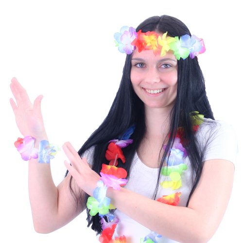 Neprehliadnuteľná sada na karneval v štýle "Havaj" je parádnym doplnkom ku kostýmu. Tento farebný set obsahuje 2 náramky, 1 náhrdelník a 1 čelenku. Všetko je zdobené okvetnými lístkami a nádhernou kyticou. Senzácia!
