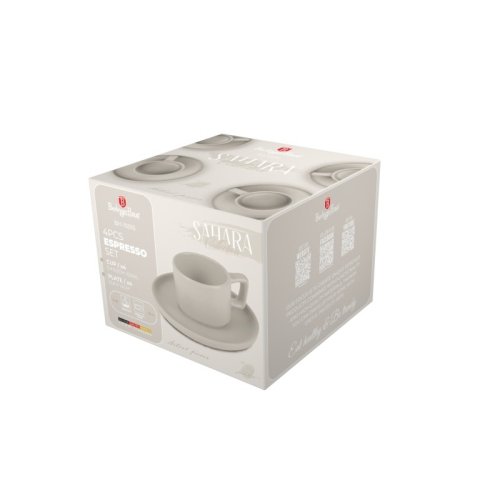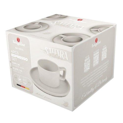 <SPAN lang=SK><P dir=ltr align=left>Vynikajúca kvalita kameniny<BR>Doprajte si nadčasové kúzlo sady šálok BerlingerHaus BH-10015 Sahara. Táto sada je vyrobená z kameniny prvotriednej kvality a obsahuje štyri šálky na espresso a štyri zodpovedajúce taniere, všetky v upokojujúcej matnej krémovej farbe. Šálky s rozmermi 5 x 6,5 cm a objemom 100 ml sú ideálne pre vaše každodenné espresso, zatiaľ čo taniere s rozmermi 12,8 x 1,5 cm sú ideálne ako podšálky alebo na podávanie sprievodných sušienok alebo malých pochúťok.</P>< Jemný matný krémový povrch</B><BR>Matný krémový povrch tejto sady ponúka jemný, neutrálny tón, ktorý doplní akýkoľvek kuchynský dekor. Táto decentná elegancia robí zo šálok a tanierikov na espresso štýlový doplnok vašej kávovej rutiny, či už začínate ráno alebo končíte večierok. BR>Navrhnutý s ohľadom na moderné domácnosti, set je stohovateľný pre ľahké skladovanie, čo vám umožní maximalizovať priestor v skrini a zároveň udržať vaše pracovné dosky čisté. Táto funkcia je obzvlášť cenná v menších kuchyniach alebo espresso baroch, kde je priestor na prvom mieste. , Že táto espresso sada ľahko zvládne každodenné používanie. Súprava je vhodná do umývačky aj mikrovlnnej rúry a ponúka okrem estetického vzhľadu aj praktickosť, zjednodušuje prípravu nápojov a čistenie. Prečo si vybrať sadu šálok BerlingerHaus BH-10015 Sahara? /B><BR>Vylepší váš zážitok z kávy svojim elegantným dizajnom a praktickými funkciami. Ideálne pre nadšencov do espressa, ktorí oceňujú dotyk štýlu vo svojom kuchynskom riade. Ponúka pohodlie v umývačke a mikrovlnnej rúre pre ľahkú údržbu.</P><P dir=ltr align=left>Premeňte svoje chvíle pri káve na luxusný rituál so sadou šálok BerlingerHaus BH-10015 Sahara. Táto sada je ideálna pre tých, ktorí oceňujú sofistikovanosť a funkčnosť a zaistia, že si každé espresso vychutnáte štýlovo. Objednajte si teraz a posuňte svoju každodennú kávovú rutinu na umeleckú formu. - Materiál: kamenina - 4 ks šálok: 5 6,5 cm, 100 ml - 4 ks tanierikov: 12 ,8 1,5 cm<BR>- Farba: matná krémová sahara<BR>- kamenina prémiovej kvality<BR>- Možnosť stohovania<BR>- Matný dizajn<BR>- Možno umývať v umývačke riadu<BR>- Vhodné do mikrovlnnej rúry