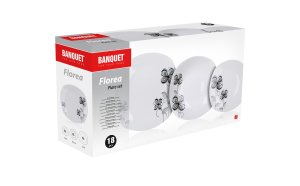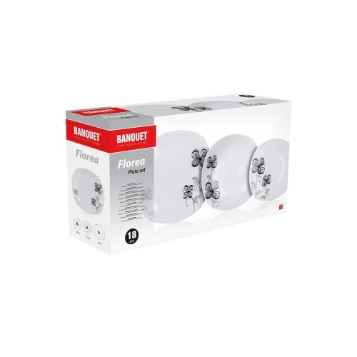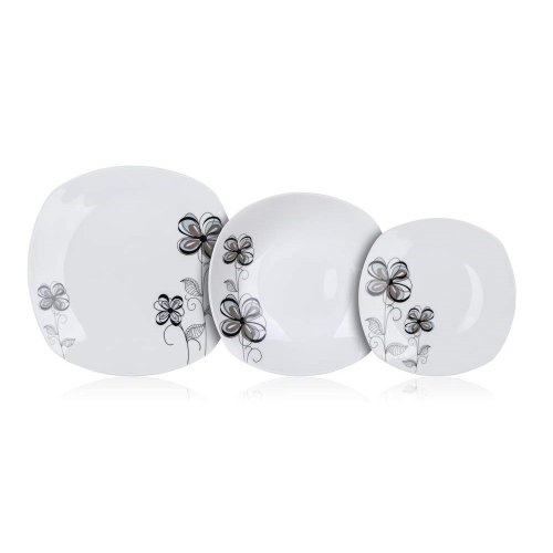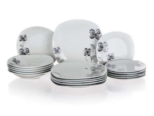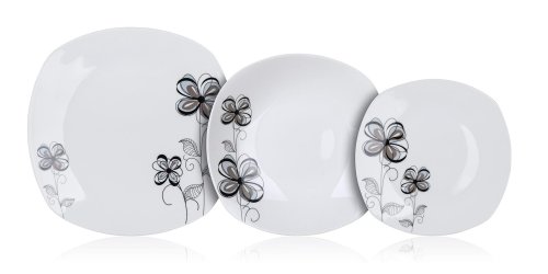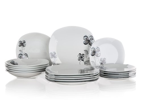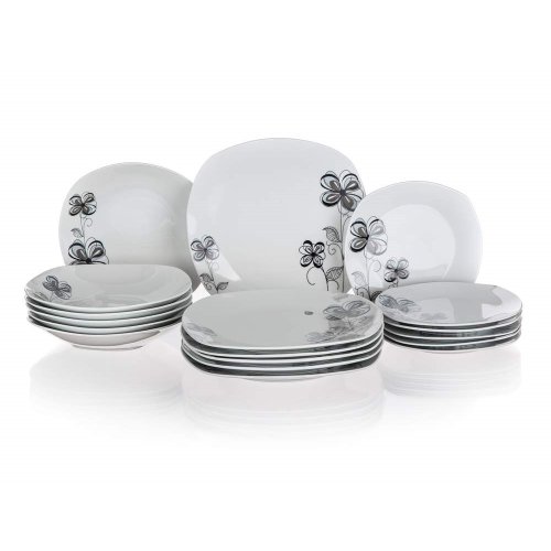 18dielna tanierová sada square FLOREA je vyrobená z porcelánu. Taniere je možné používať do mikrovlnnej rúry a umývať v umývačke riadu.