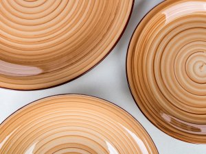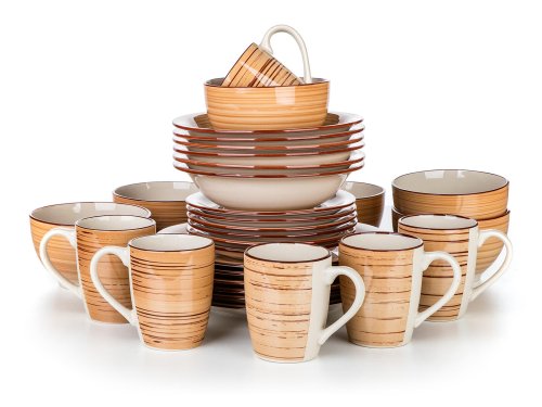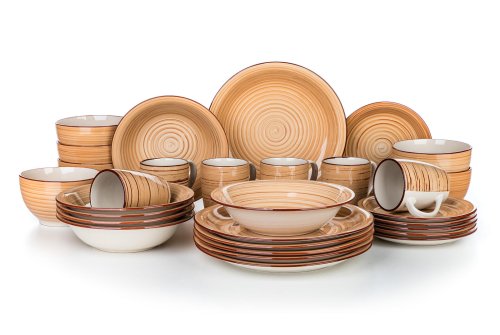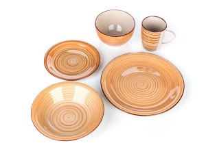 30dielna jedálenská súprava SPIRAL BROWN sa hodí pre každé stolovanie. Riad je možné používať do mikrovlnnej rúry a umývať v umývačke riadu.