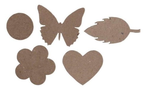 Súprava lepenkových výrezov v základných tvaroch je ideálna pre rozvíjanie detskej predstavivosti. Na lepenku je možné maľovať alebo ju ľubovoľnými doplnkami ozdobiť. Tvary: srdce, motýľ, kvietok, kruh, list Veľkosť: cca 6x10 cm, hrúbka lepenky 2 mm Množstvo v balení: 5 ks