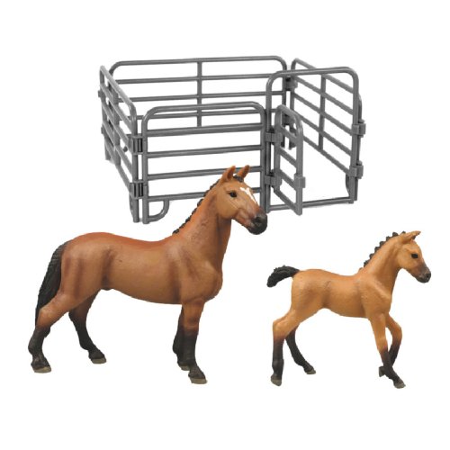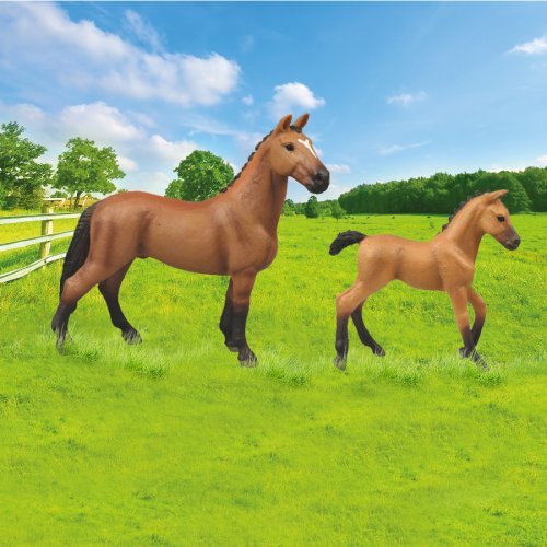 Figúrka koňa a žriebäťa v hnedej farbe s bielou škvrnou. Súčasťou balenia aj ohrada. Ideálne pre milovníkov koní. Táto hračka je súčasťou kolekcie Moja malá farma.